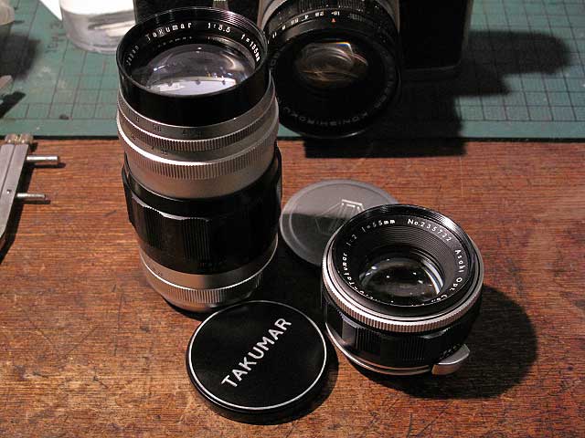 オートタクマー55mm f2、タクマー135mm f3.5初期のM42マウントペンタックスレンズです。