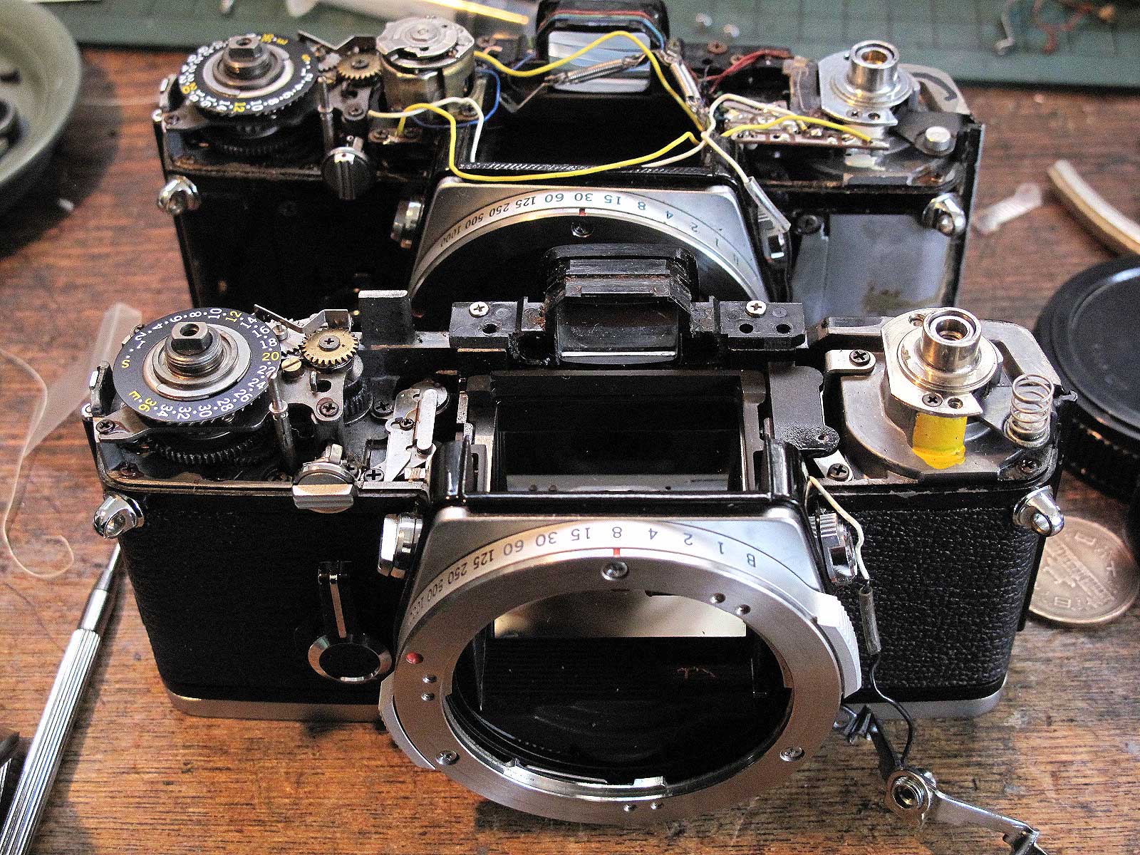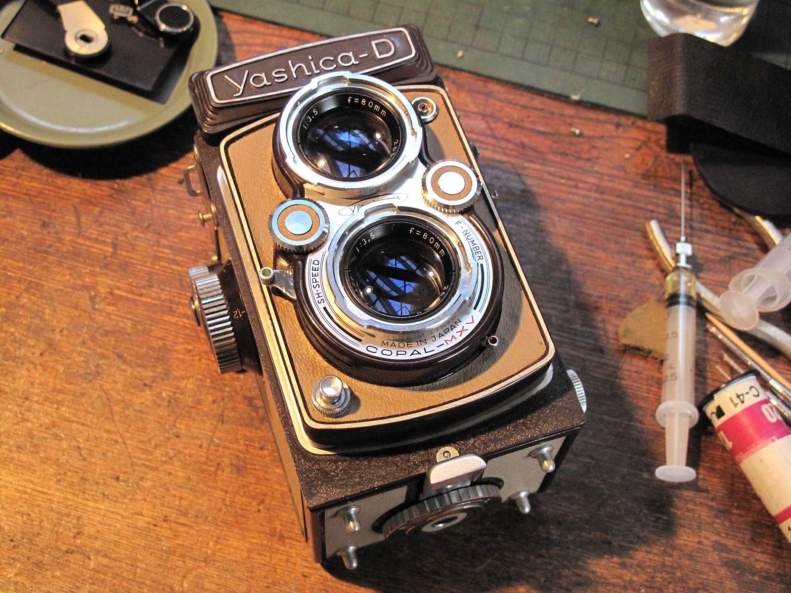 整備中のOM-1とYashica D 投稿日: 2013年04月08日 TさんのOM-1、整備進んでます。スクリーンも探し中です。 頼まれもののヤシカD、チョコレート色がいい感じですし、フレネルレンズ入りの明るいファインダー、操作しやすい露出、シャッターチャージなど中身も充実しています。