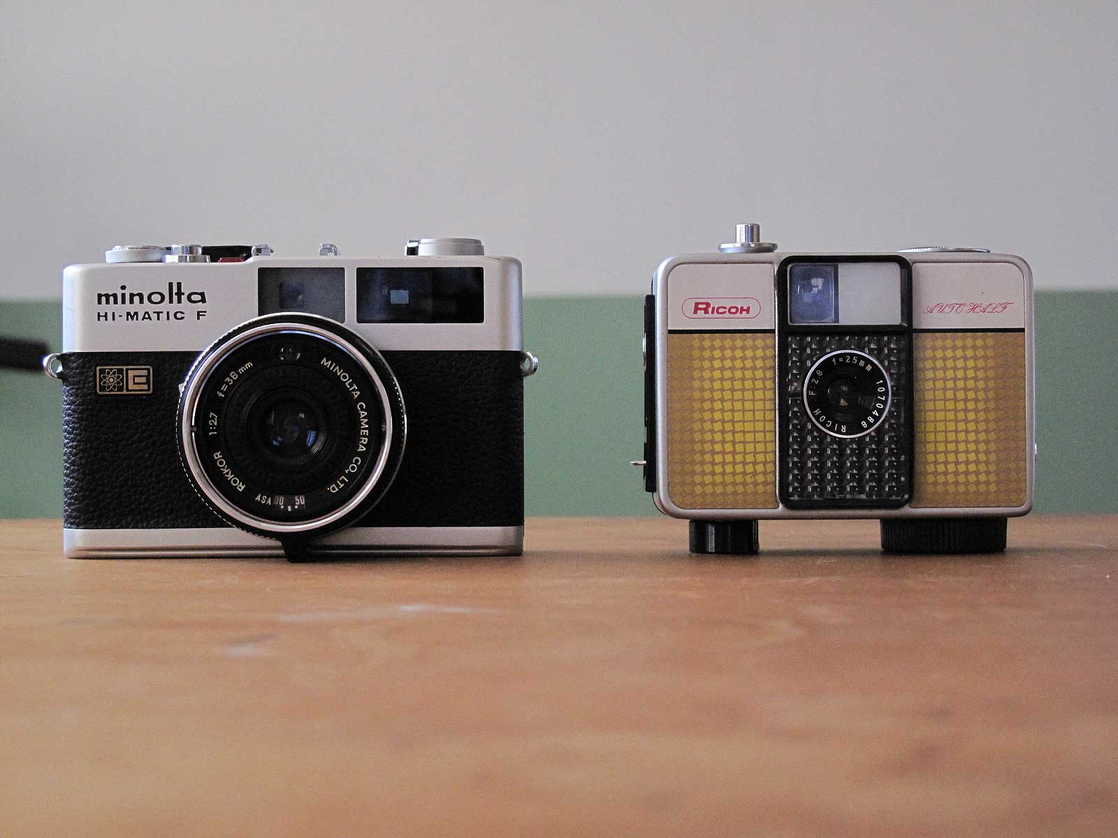 BRONICA S2とHI-MATIC F、AUTOHALF E 投稿日: 2013年04月20日 ゼンザブロニカS2、正方形ロクロク中判一眼レフです。上から覗くウエストレベルファインダーで機械式、がっしりと頑丈です。sold レンズはニッコール75mm f2.8でしっかりとした写り、きれいな状態のグレーのボディです。sold ちなみにボロいブラックボディもあります。26,000円(もちろん中身はちゃんとしてます。) ミノルタのハイマチックF、小さなレンジファインダーカメラです。露出はオート、ピントはマニュアル、サイズ感操作感が丁度良いカメラです。sold リコーのオートハーフE、今回の柄は黄色です。ゼンマイギミックが痛快なアナログ全自動ハーフサイズカメラです。sold