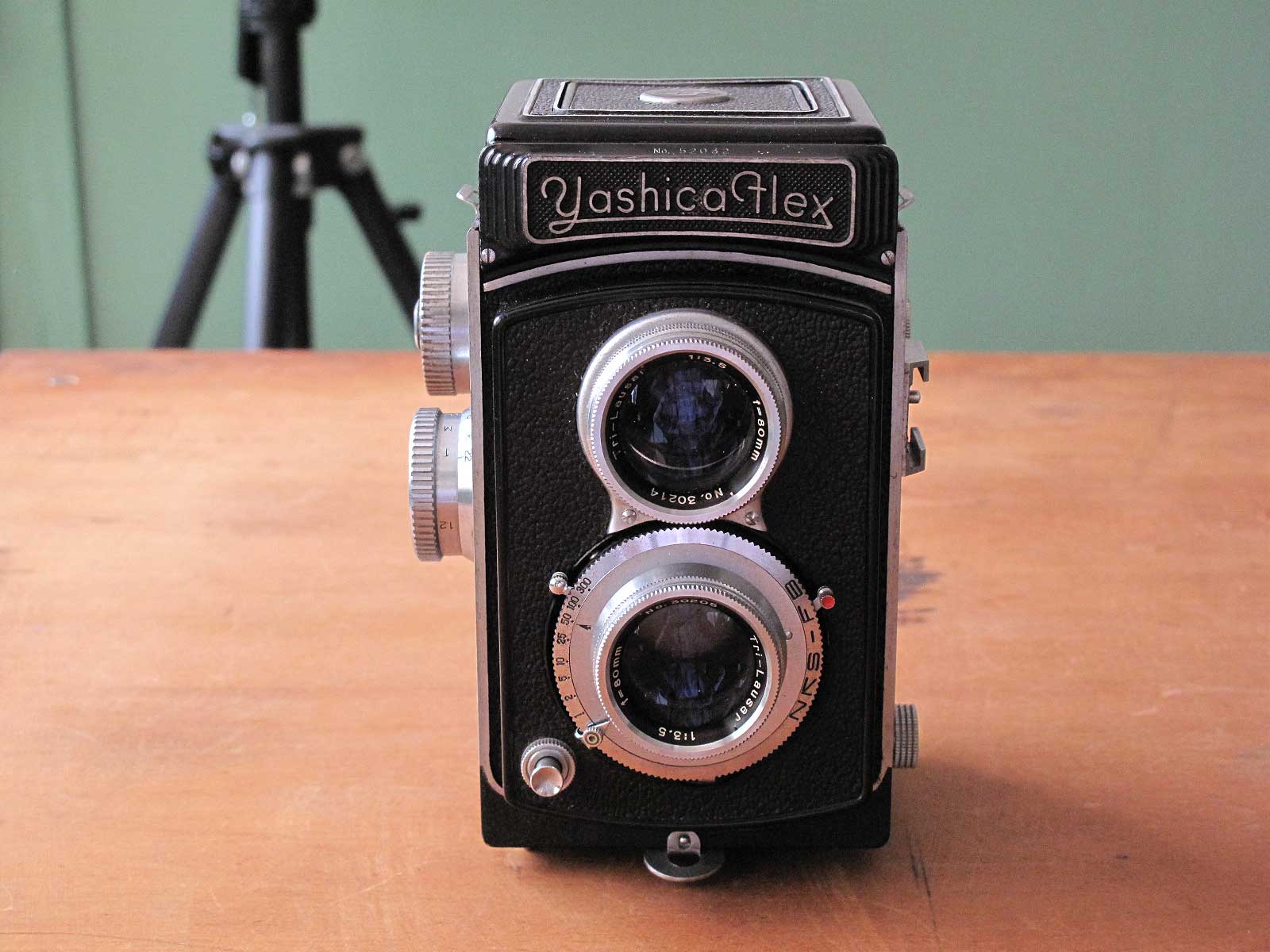 ヤシカフレックス、こちらも定番の2眼レフです。マミヤC3より小さく、軽く、気軽に使いやすくなっていると思います。巻き上げノブが痛んでいたので純正でないものに交換しています。sold