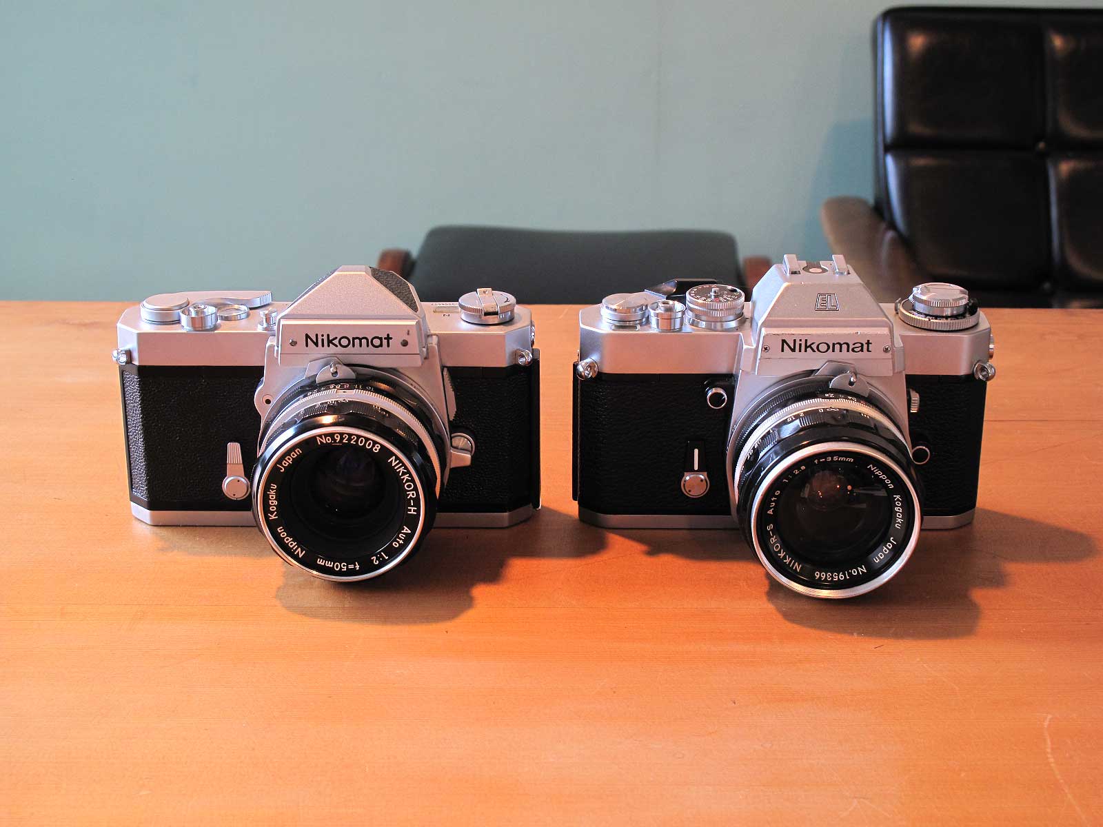ニコンのニコマート2台、左のFTNは機械式、露出計が修理できなかったのでフィアンダー内の表示ごと外しています。それ以外は問題なくファインダーやレンズも清掃し一通り整備してます。sold
