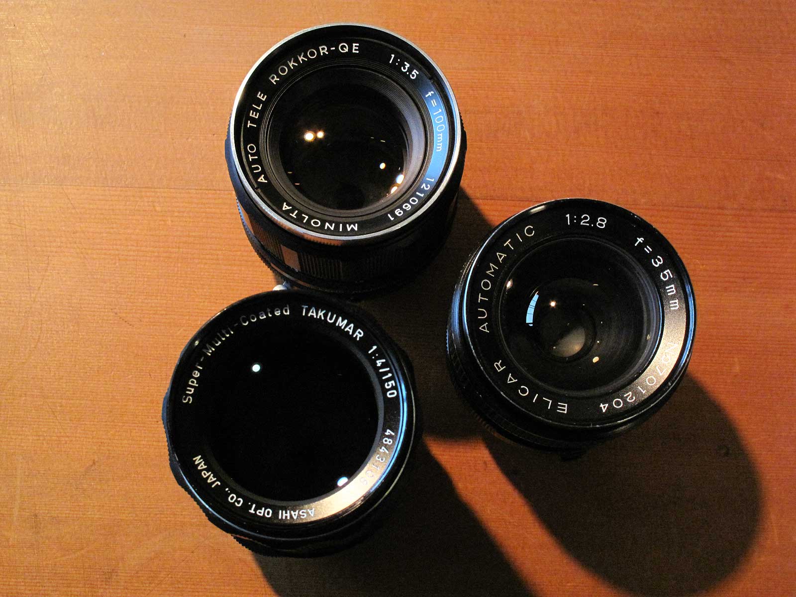 レンズ3本追加しています 投稿日: 2013年08月27日 使いやすい中望遠のミノルタの100mmF3.5、ミノルタSRマウントのちょっと珍しいELICAR 35mm f2.8、ペンタックスの中望遠150mm f4、これもちょっと珍しい焦点距離です。 minolta 100mm F3.5 sold ELICAR 35mm f2.8 sold PENTAX 150mm f4 sold 無事整備できたオートコード、無事お客さん渡せました。ロボットみたいでかっこいいです。作りもすごく良いです。