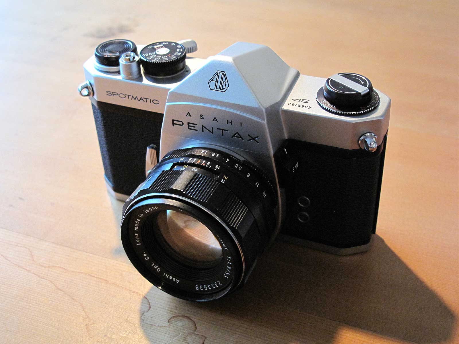 ペンタックスのSP、こちらも良い作りの機械式一眼レフですがニコマートよりは小さめで、シャッターの感触も軽快です。50mm f1.8のタクマーレンズはニッコールより柔らかくやさしい雰囲気です。sold