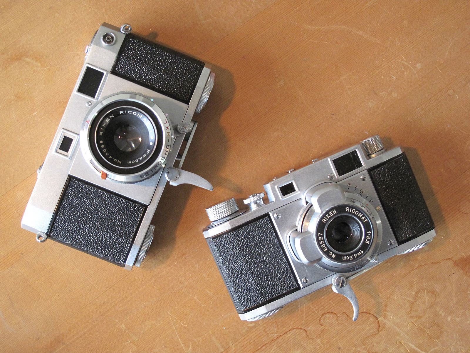 RICOH35と35deluxe 投稿日: 2014年04月21日 リコーの初代35と35デラックス入荷しました。独特なトリガー巻き上げが面白く、でも真面目でシンプルなレンジファインダーカメラです。35、sold 35deluxe sold