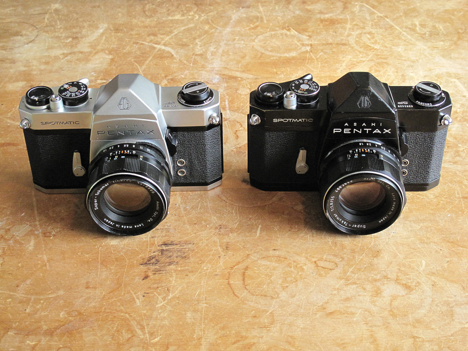 PENTAX SP 投稿日: 2017年03月05日 60年代の名機ペンタックスSP、シルバーとブラックが揃っています。 無理のない頑丈な構造で整備すればしっかり使えるものが多いです。50年近く前の機械なので整備しても絶対故障がおこらない訳ではないですがその都度整備して長く使ってもらえるカメラだと思います。今回はどちらもなかなかきれいな状態です。 シルバーsold ブラックsold