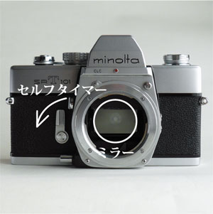 筆頭機であるSR-7をベースに、ミノルタ初のTTL露出計を内蔵したロングセラーカメラ。minoltaの旧ロゴを持つペンタプリズムがとても優雅な印象です。