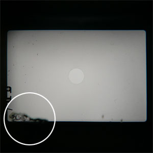 ファインダーは被写体や構図の決定、ピントを合わせたりと非常に重要な役割を担っています。一眼レフの場合はミラーやプリズム、接眼レンズの汚れや 腐食が考えられ、レンジファインダーやビューファインダーのカメラについても、倍率を変えたり光を取り込むために様々な工夫が凝らされているため、その分腐食可能性のある箇所が多く存在します。 一枚目の写真は、ファインダー内のレンズにゴミが溜まっている状態です。次のものは、一眼レフのスクリーン上にゴミが溜まっている状態。三枚目の写真は、一眼レフのプリズムが腐食して印の部分がモヤモヤとしています。 ファインダーがくもっていたり、黒い点々のシミがあったりすると全体が暗くなってうまくピントが合わせられなくなったり、構図が決めにくくなったりと実際の使用時に不快感が出てきてしまいます。 直接写真に写り込むものではありませんが、清掃することでより快適にカメラを楽しむことができると思っています。 |