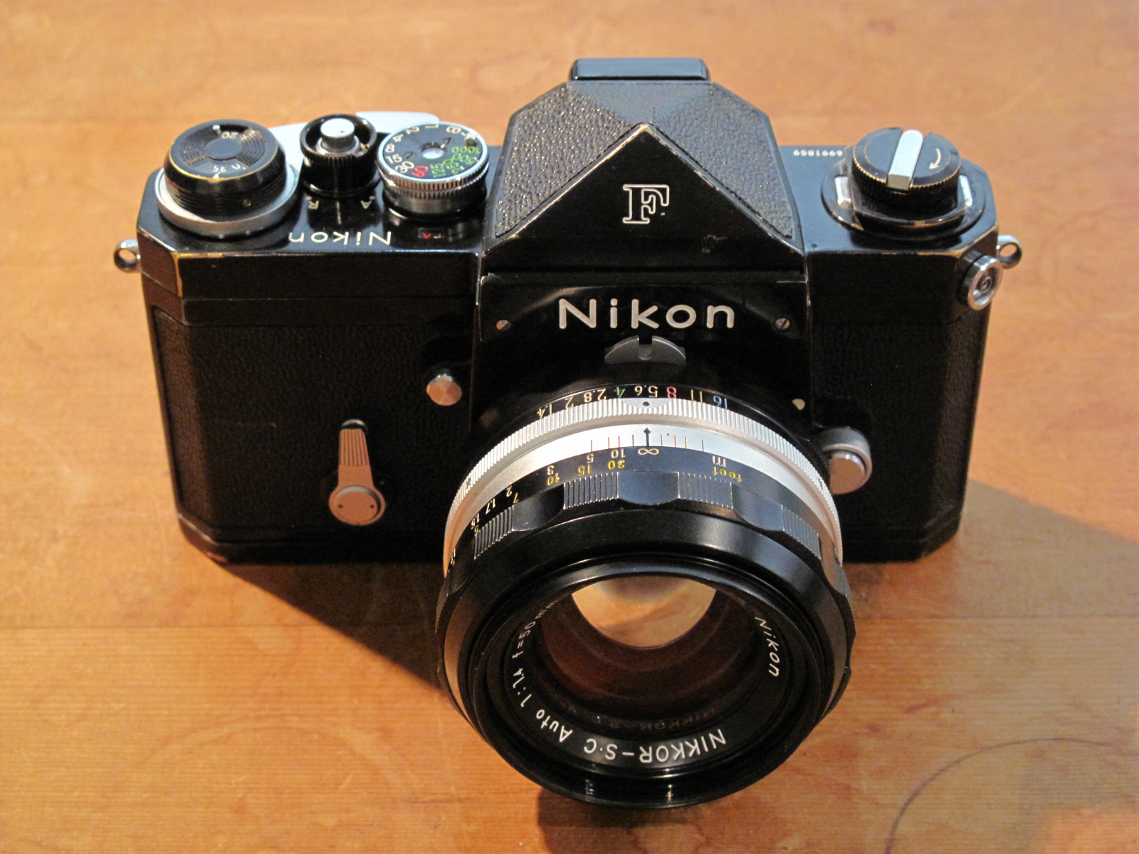 ニコンFのブラックボディーが入荷しました。結構使い込まれた外観でむき出しの地金が渋いです。