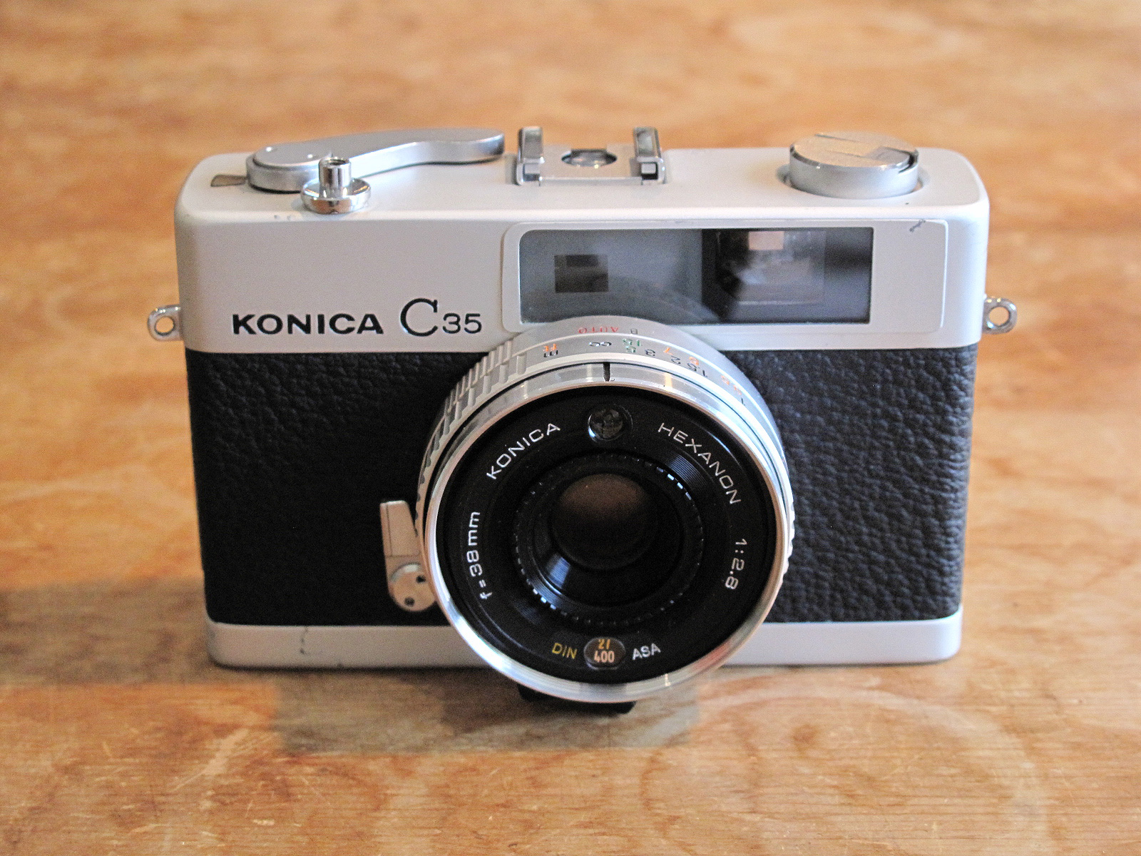 コニカC35が再入荷しています。コンパクトながらレンジファインダーでピントが合わせられます。シャッターはオートながら操作もデザインも少しクラシックなのが良いところです。sold
